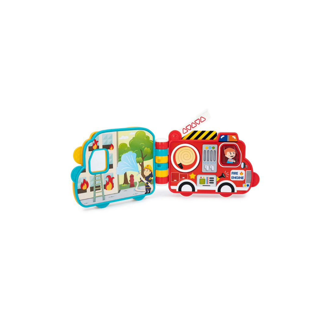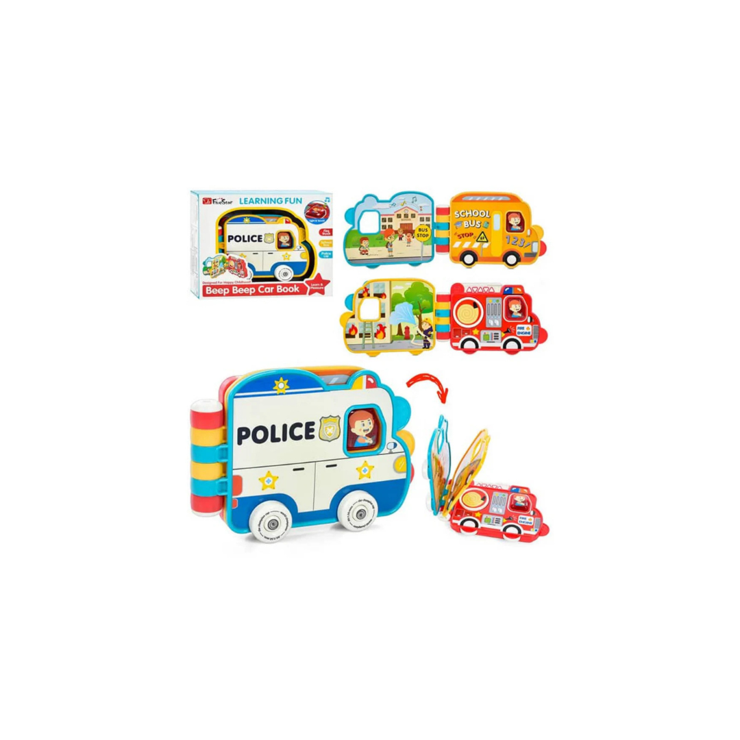 Este libro interactivo presenta los distintos vehículos como policía, bus escolar y bomberos. Estimula la motricidad fina, la coordinación ojo-mano y la exploración sensorial a sus colores llamativos y texturas diseñadas especialmente para manos pequeñas. Fomenta el juego simbólico, el desarrollo cognitivo y la imaginación, permitiendo que los niños descubran distintas funciones.