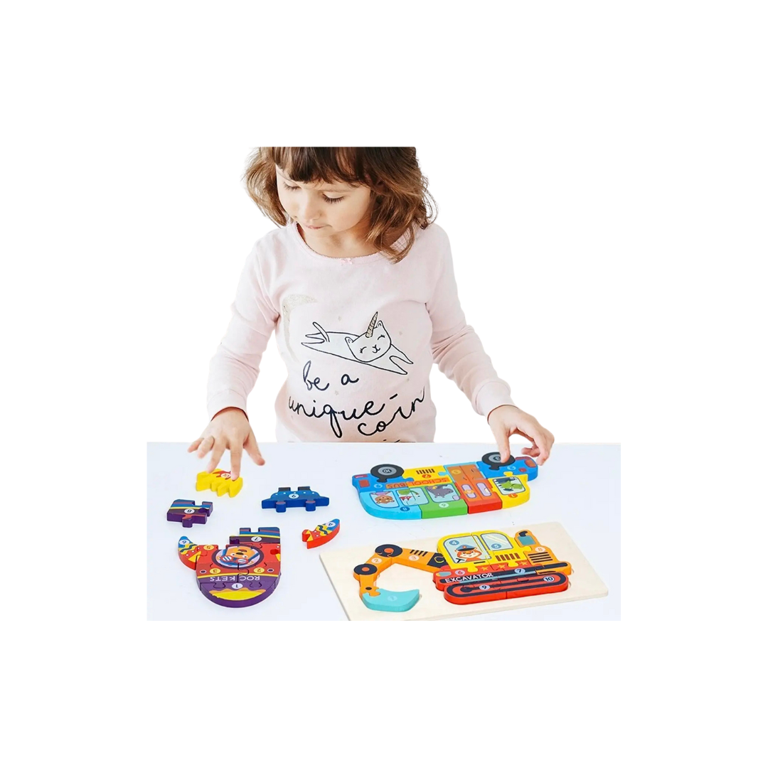 Un rompecabezas colorido y resistente que invita a los niños a reconocer distintos medios de transporte mientras desarrollan la concentración, la coordinación y el pensamiento lógico. Ideal para el aprendizaje temprano y el juego autónomo.