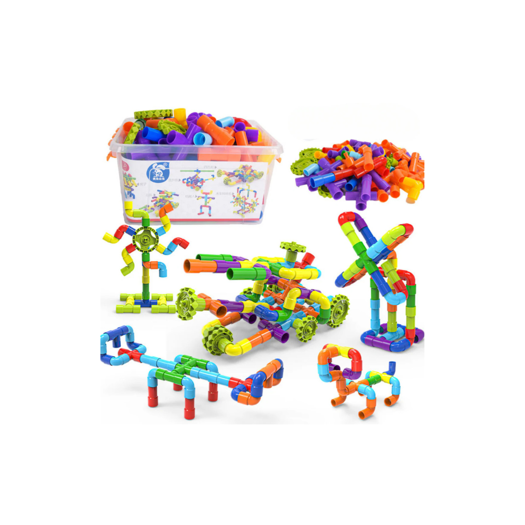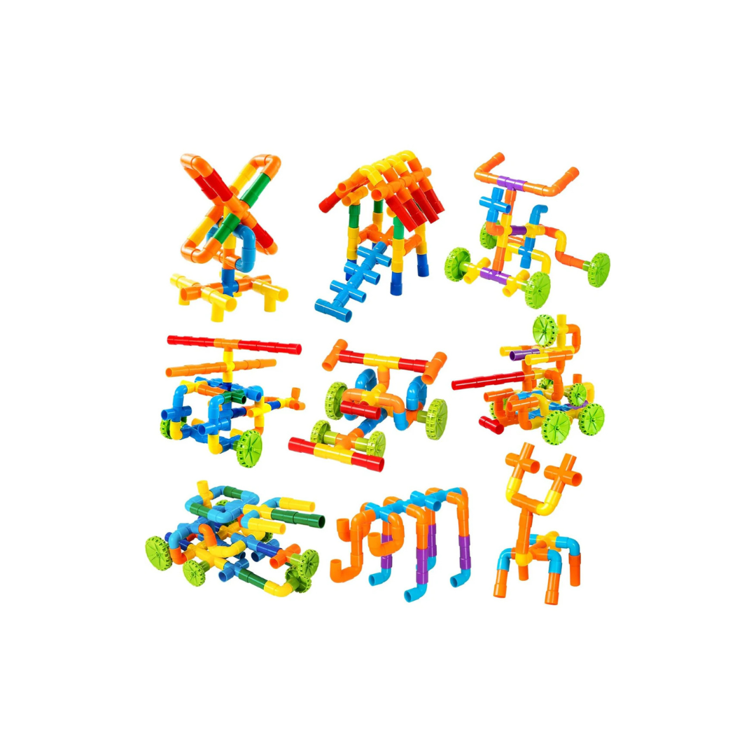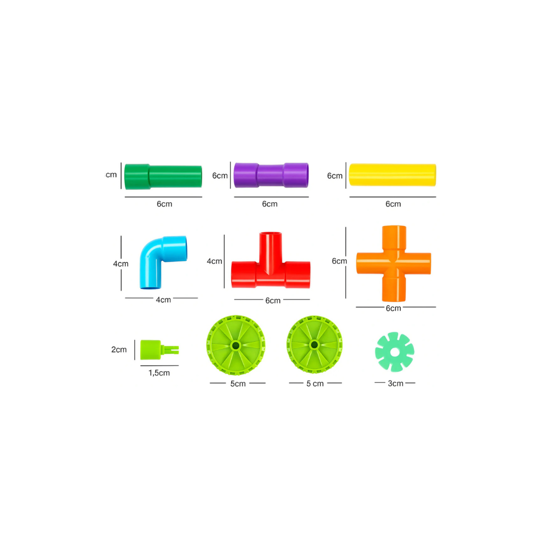 Este colorido juego de tubos encajables estimula la motricidad fina, la coordinación ojo-mano y la destreza manual mientras los niños crean figuras y estructuras imaginativas. Favorece además el pensamiento creativo, la resolución de problemas, el reconocimiento de colores y el desarrollo cognitivo temprano. Perfecto para actividades en casa o para trasladar donde quieras con su cómodo formato, fomentando el aprendizaje a través del juego.
