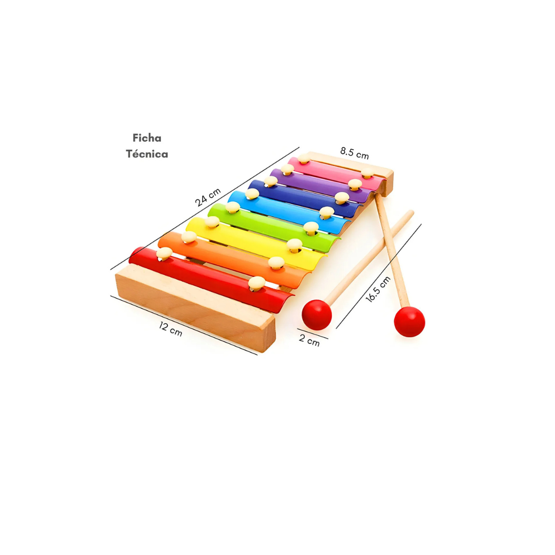 Este xilófono de diseño clásico y tonos vibrantes invita a los pequeños a explorar el mundo de la música mientras desarrollan su motricidad fina, la coordinación ojo-mano y el ritmo. Sus barras metálicas de colores facilitan el reconocimiento visual y estimulan la percepción auditiva, promoviendo la creatividad y la expresión musical desde edades tempranas. Perfecto para introducir a los niños en el juego sensorial sonoro y para acercarlos desde pequeños al mundo musical!